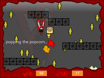 Ah! After the evil-doer Mr. Heart completely blows up Albin's house, Albin is left on the streets with nothing but their money... everywhere, and (infinite?) bag of popcorn. Ready to take back what Mr. Heart took.., this time with the well-being abiding nature of launching exploding, colourful popped corn!! Woah!!!!!!!!!!!!!!!!!!!!!!!!!!